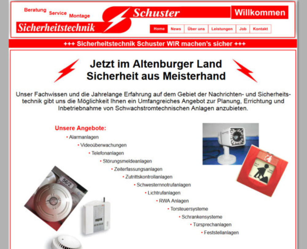 Die Homepage der Sicherheitstechnik Schuster erstrahlt in einem neuen Design