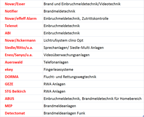 Durch Unfangreiche Schulungsmaßnahmen Spezialisierung zur Zeit für folgende Hersteller: