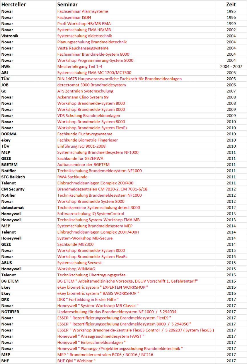 u.a. Aus Schulungen des Systemherstellers zur Planung und Errichtung von Einbruchmeldeanlagen.